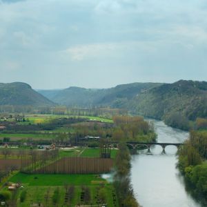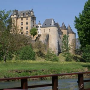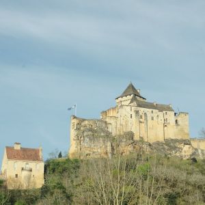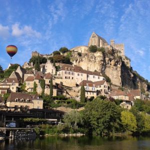 Beynac avec avec sa falaise calcaire, culminant à 150 mètres de la vallée de la Dordogne